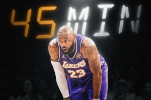 据统计,这是詹姆斯季后赛生涯第70次至少出战45分钟!