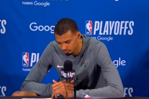 文班亚马:他的很多影响力是数据无法体现的。他太精准了,尤其是在终结比赛方面,攻防两端都是。我的意思是,他每个篮板都跳得那么高,我不知道他在常规赛和季后赛能抢多少篮板,但他在攻防两端都是一个伟大的终结者。