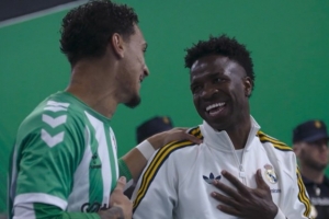 凭借这份友谊,DAZN的摄像机在球员出场前的球员通道内捕捉到了一个既自发又有趣的场景。画面始于维尼修斯调侃安东尼的新发型:“你弄了个很漂亮的发型。现在你是个稳重的人了,是两个孩子的父亲了。”