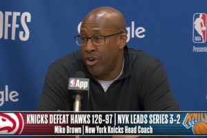 体育资讯4月29日讯 NBA季后赛首轮G5,尼克斯126-97轻取老鹰,大比分3-2领先,迈克·布朗赛后接受了媒体采访,以下为采访全文。