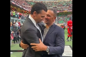 传奇遇见传奇,米兰对尤文赛前伊布与古利特在场边交流并拥抱